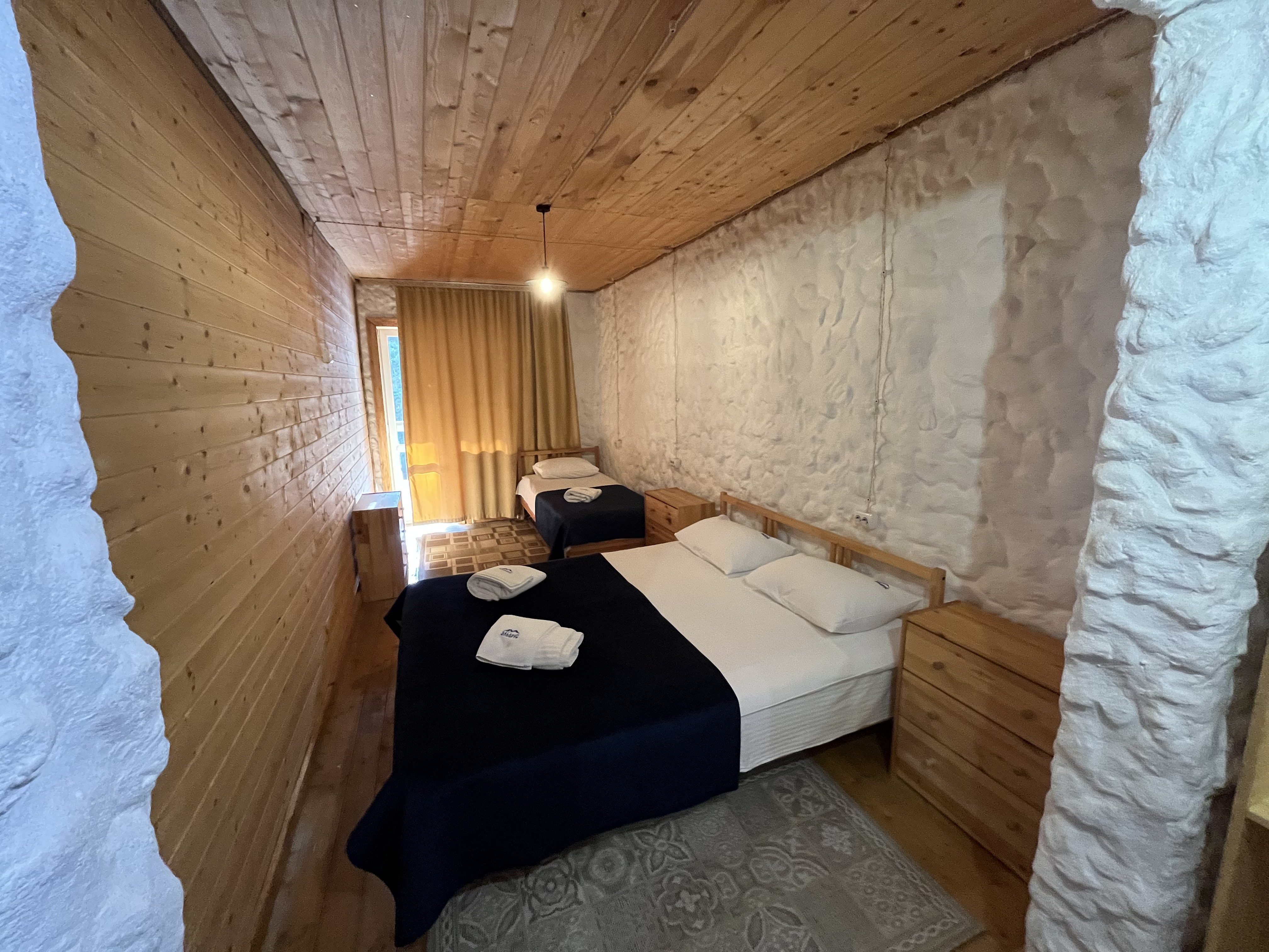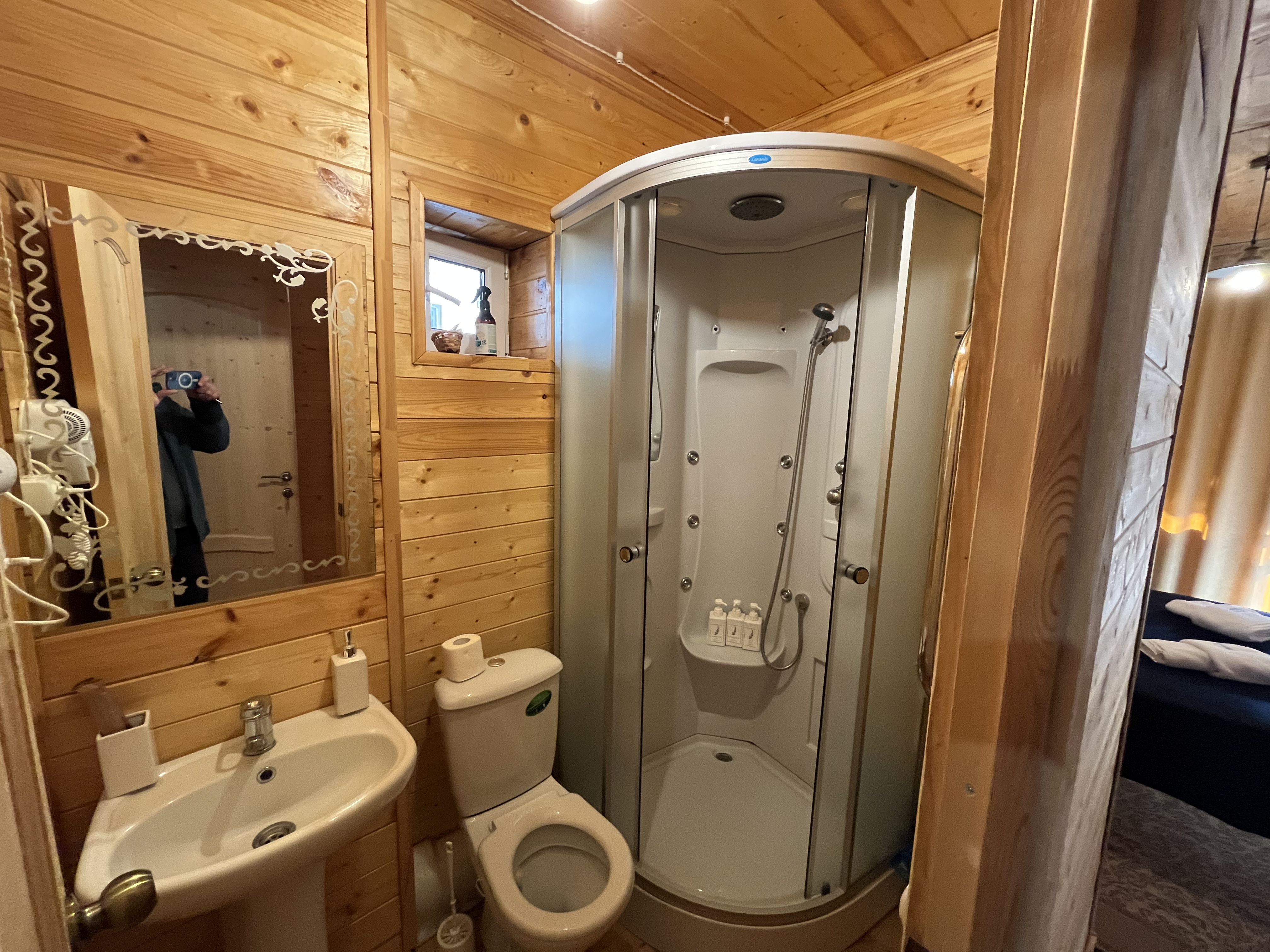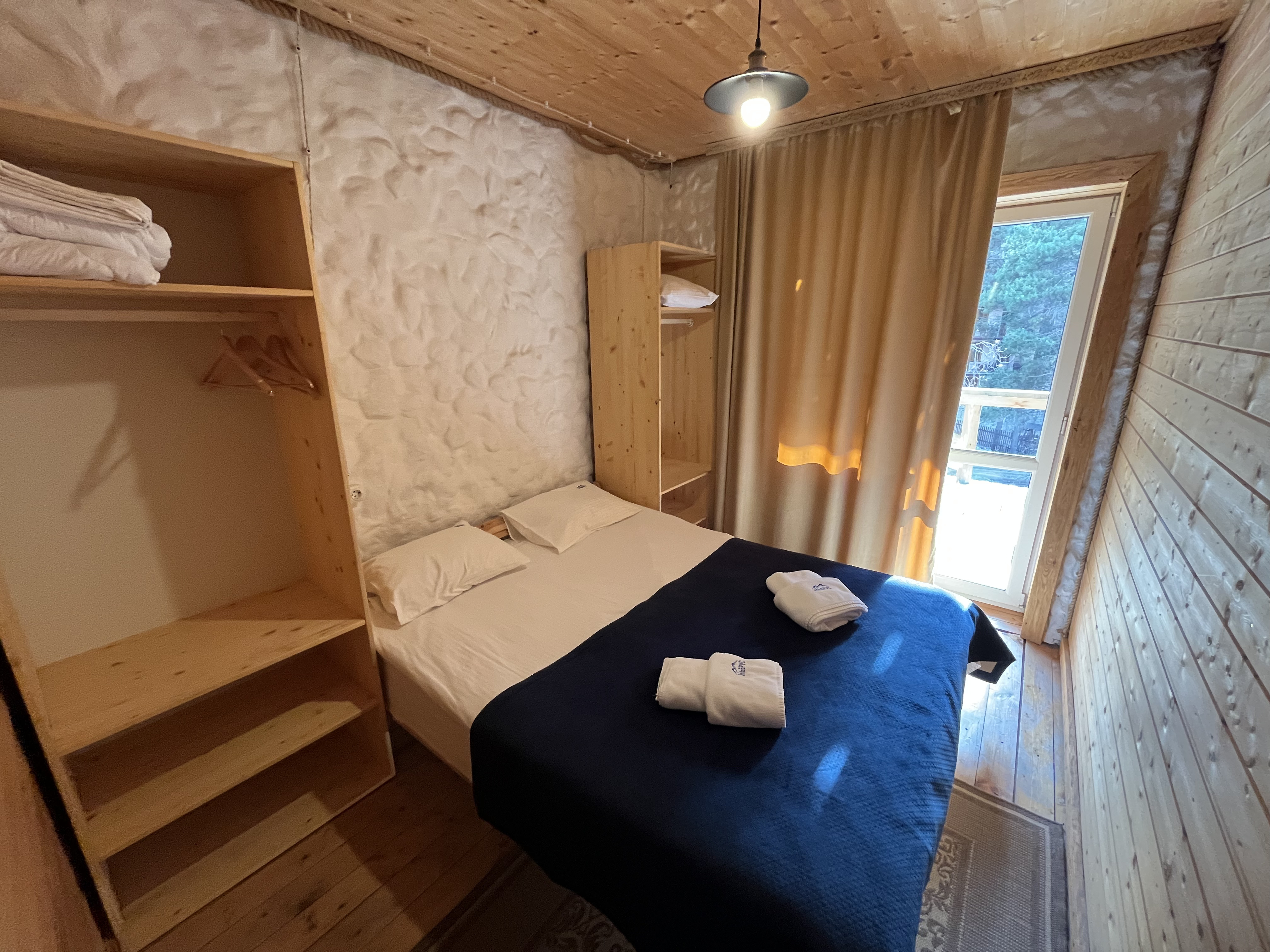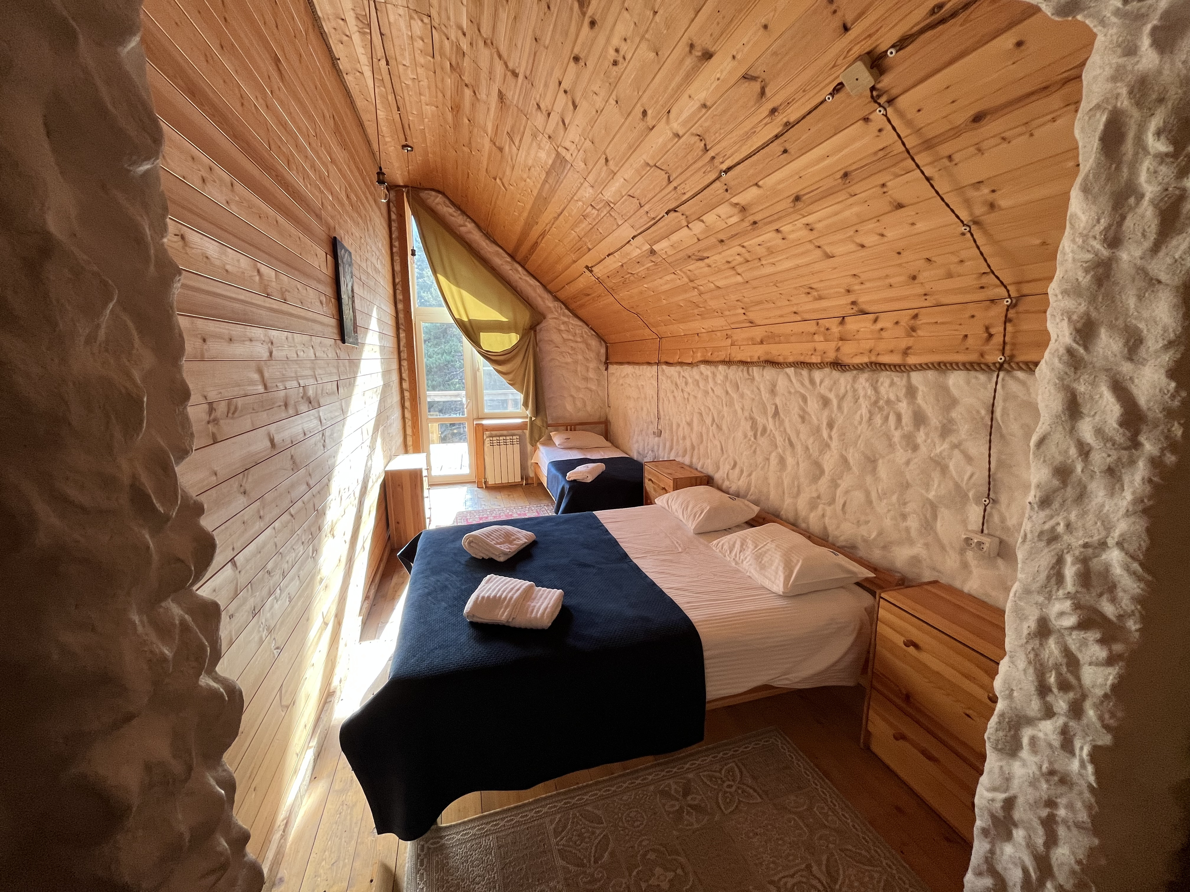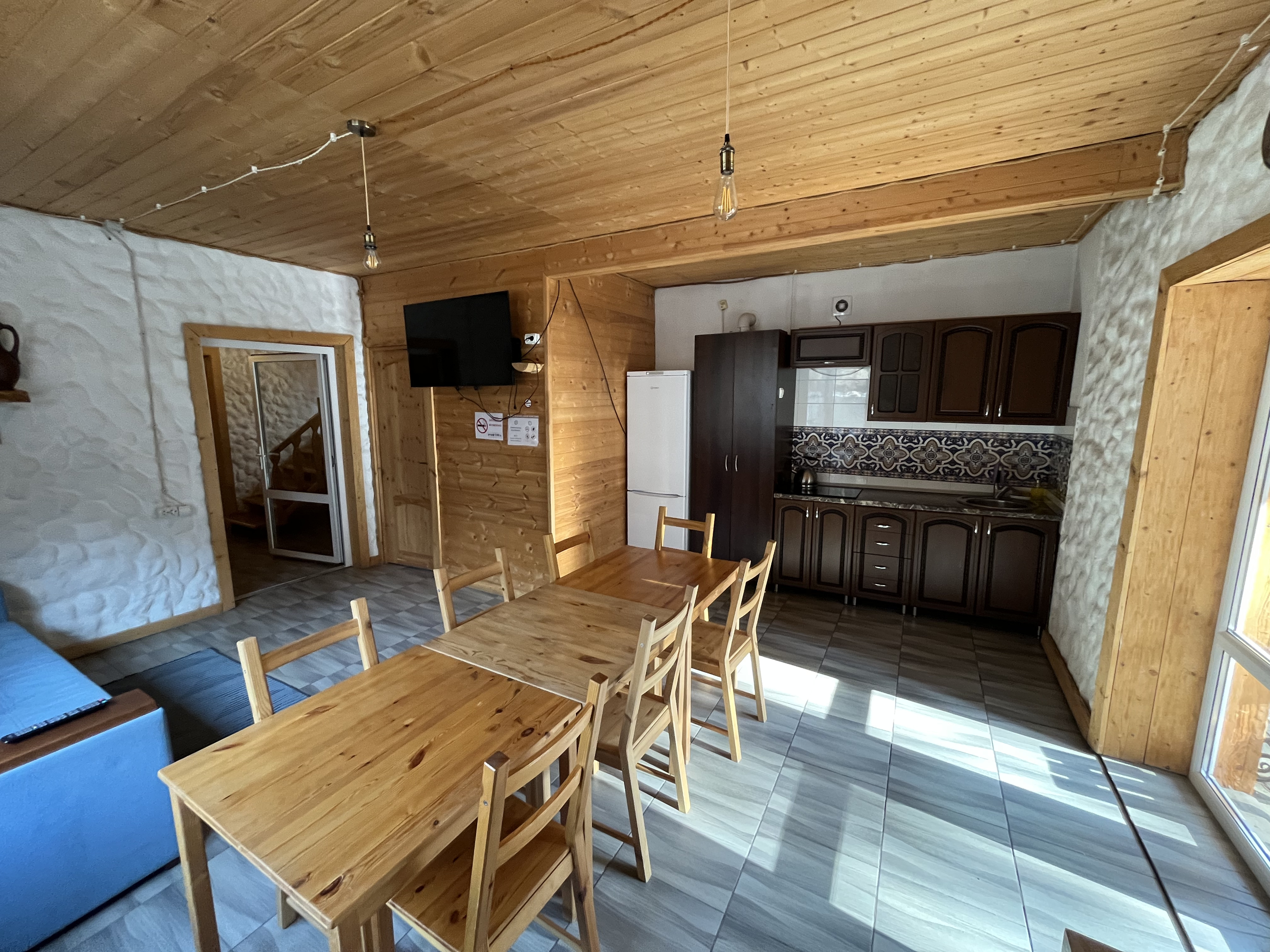 Мы предлагаем вашему внимаю просторный дом на большое количество гостей, где с комфортом разместятся от 1 до 10 человек. Домик оснащен собственным санузлом с душем, а также оборудованной комнатой отдыха. Отдохните на веранде с чашкой горячего напитка и полюбуйтесь захватывающими видами на величественные горы.